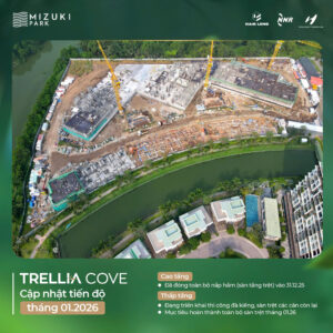 Cập nhật tiến độ dự án Trellia Cove Mizuki tháng 1/2026