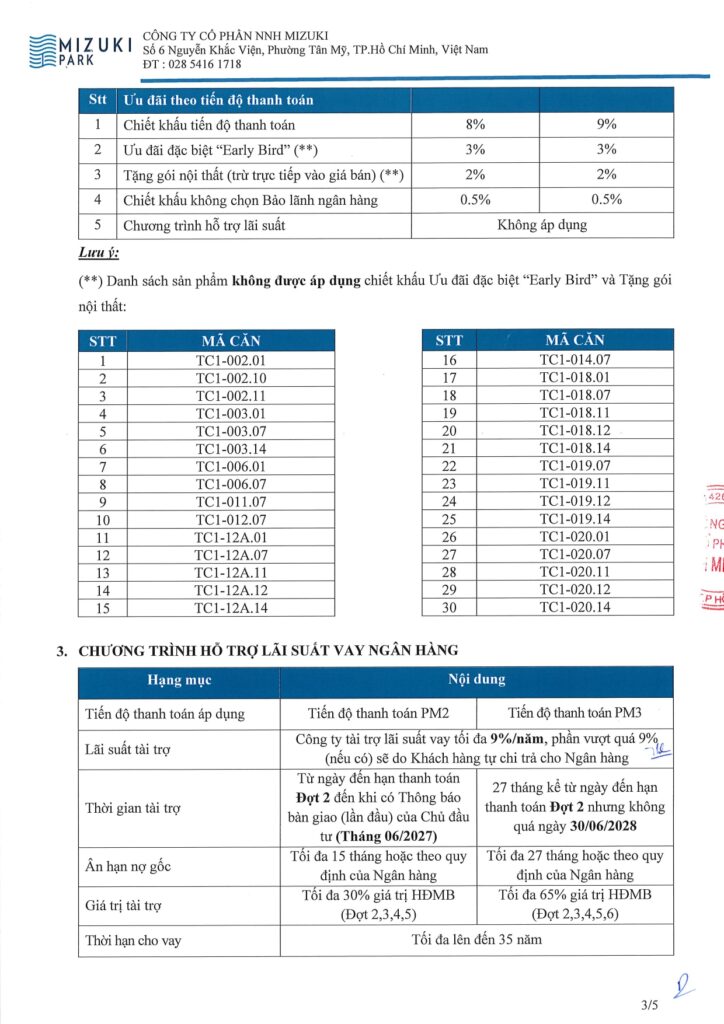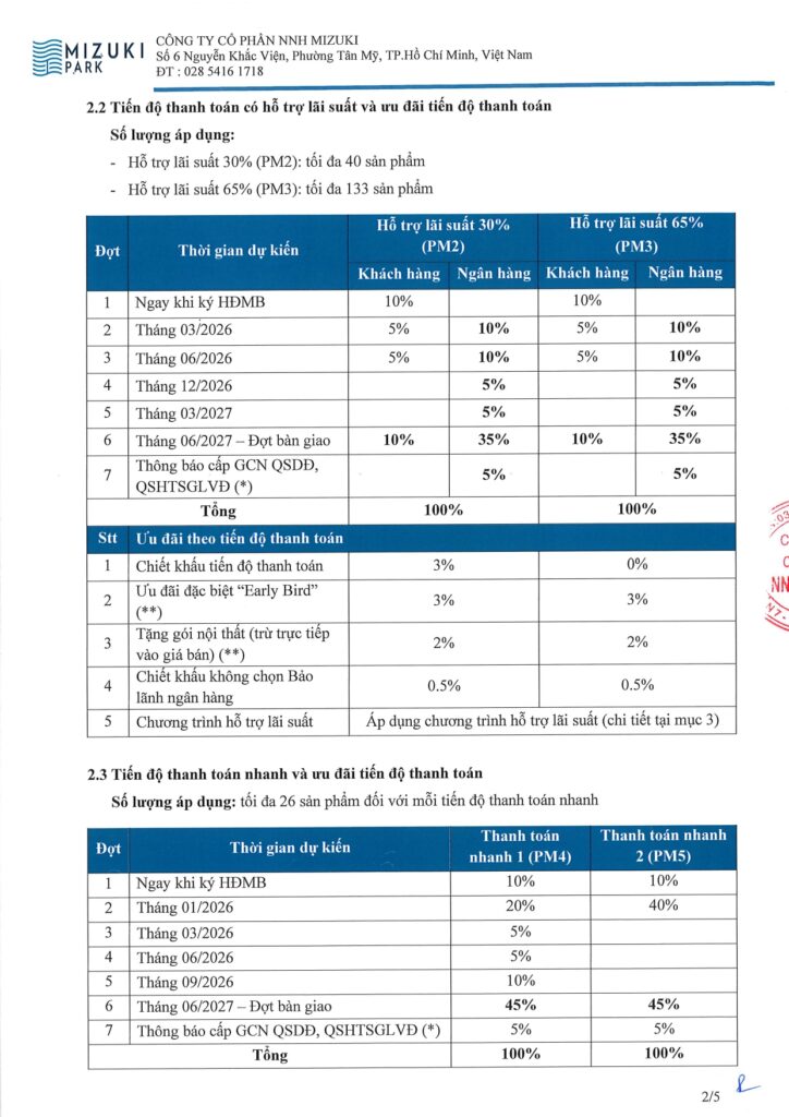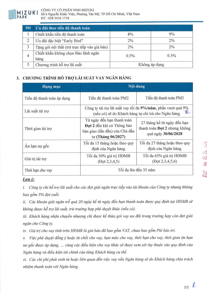 Chủ đầu tư hỗ trợ lãi suất tối đa 9%/năm trong 24 tháng với 65% giá trị HĐMB